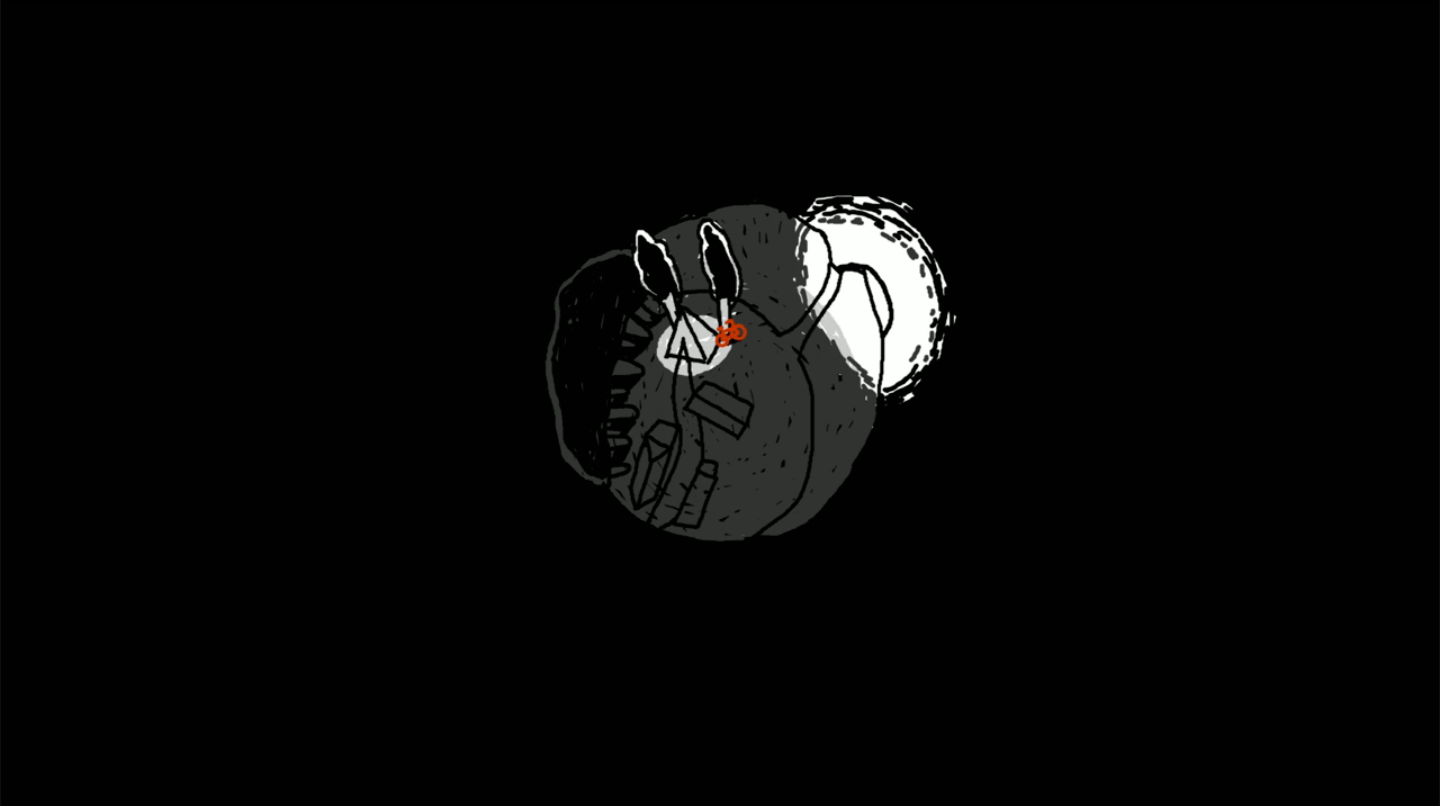 The viewer adopts a satellite perspective while the surroundings immediately visible to the cyclist distort into a miniature globe. This frenetically changing sphere helps communicate the joy associated with propelling ones self across great distances.