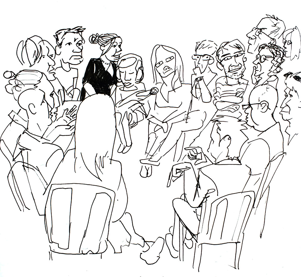 Unfortunately I missed Lord Stone’s group discussion, but waiting for the next natural interval afforded me time to sketch the beautiful workshop setting. Floating Harbour Films is a Dutch barge moored to the Welshback stretch of the river Avon in the centre of Bristol. This venue, along with the workshop facilitators, donated their time and resources without charging in order to raise money for the Bluebell Charity fund. Bluebell supports people struggling with pre and post-natal depression and anxiety.
