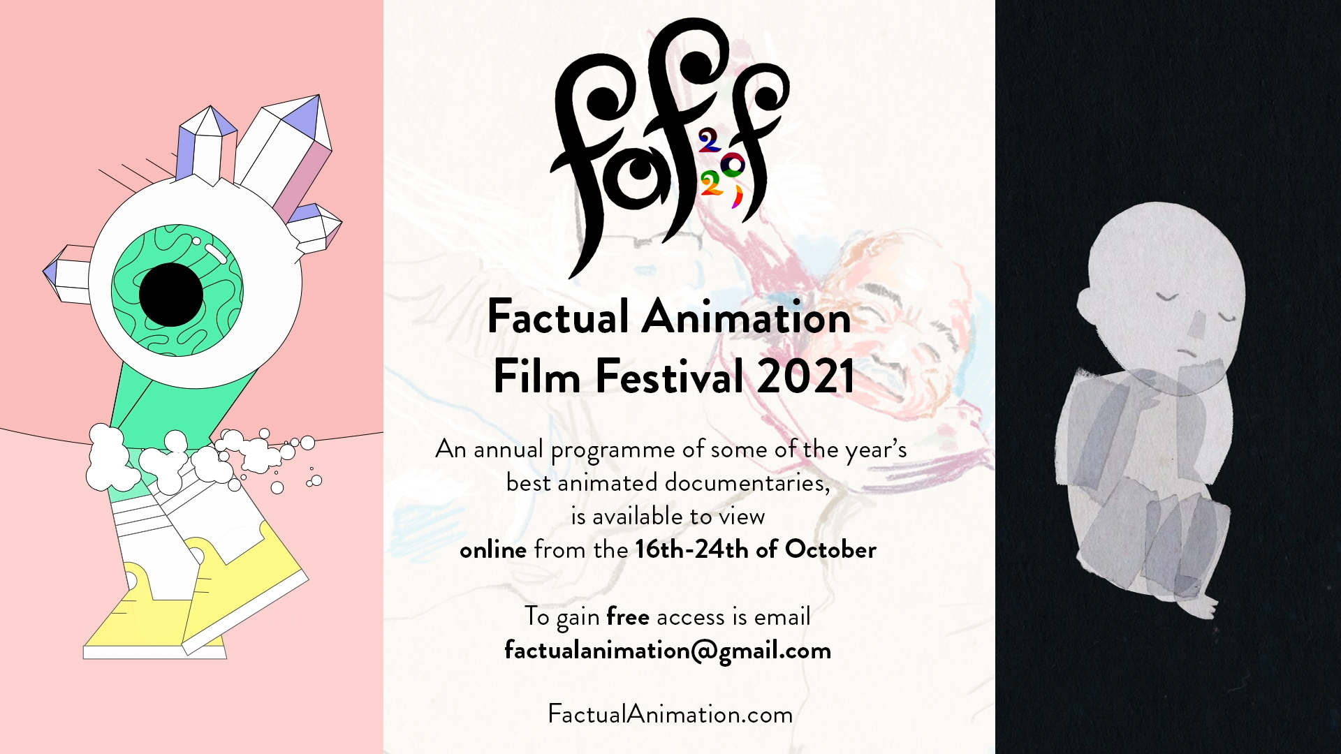 The 7th Edition of Factual Animation Film Festival was held at Queen Mary University of London’s Hitchcock Cinema on the 16th October 2021. The festival programme was also made available online until the 24th October. For full details visit factualanimation.com